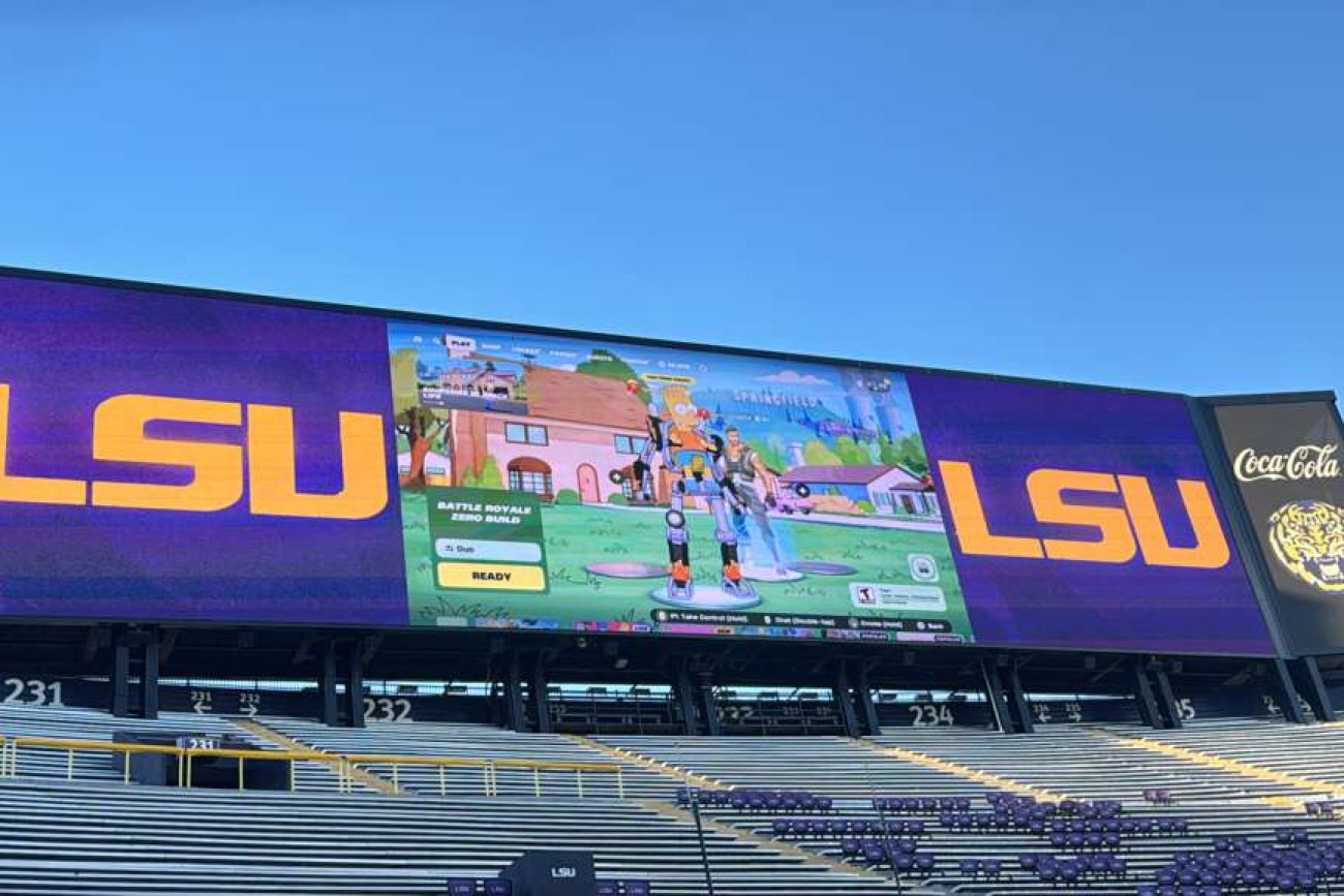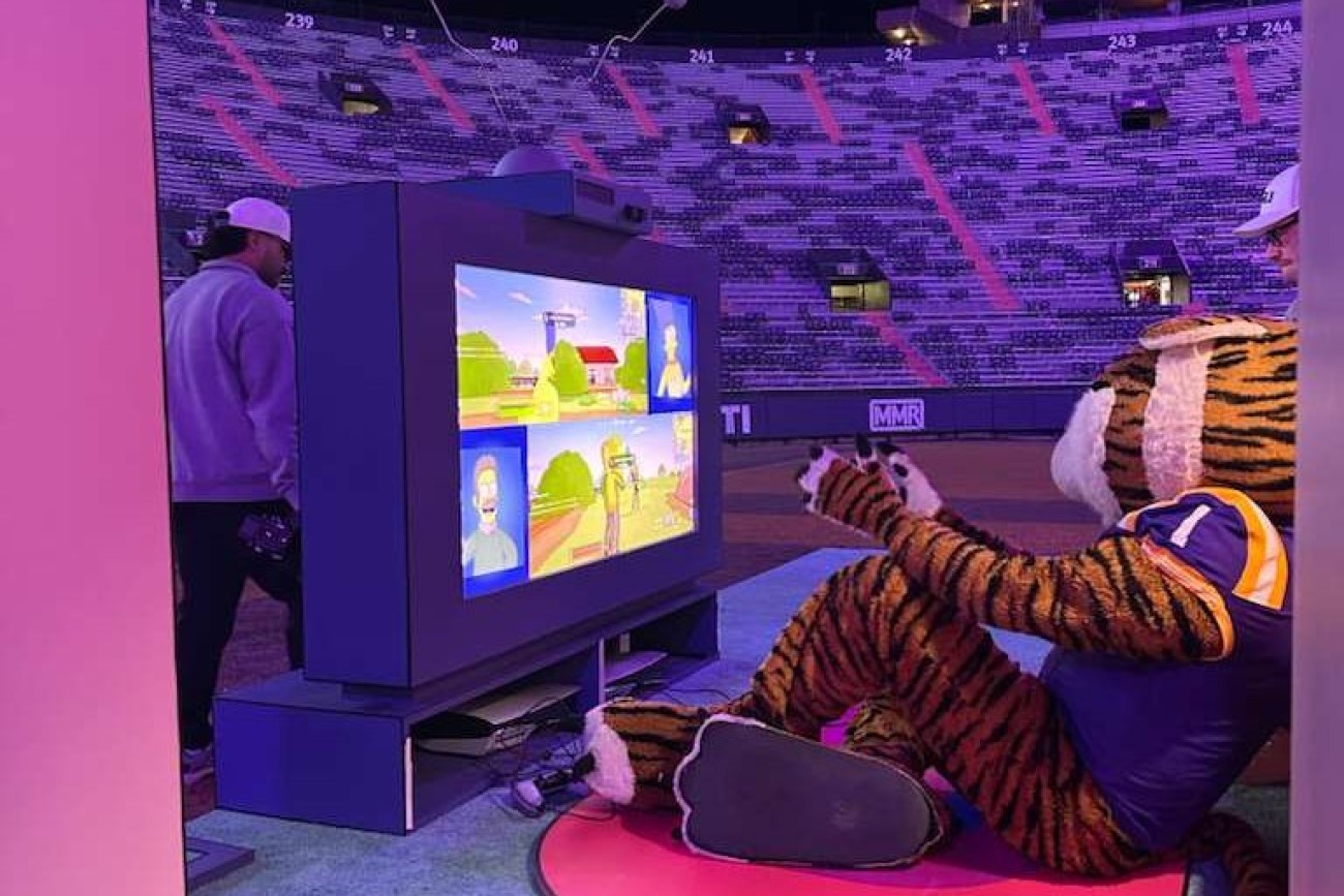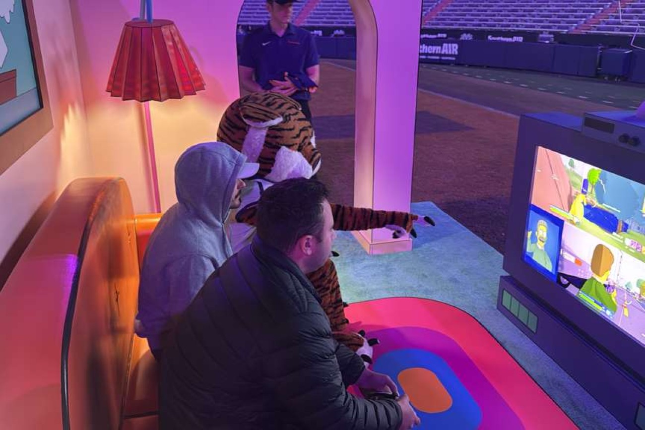 The living room quickly became a fan favorite, with the LSU football team and mascot jumping in to hang out and play inside the Simpsons living room. It was a surreal crossover of cartoons, gaming, and college football — brought to life by EFX.